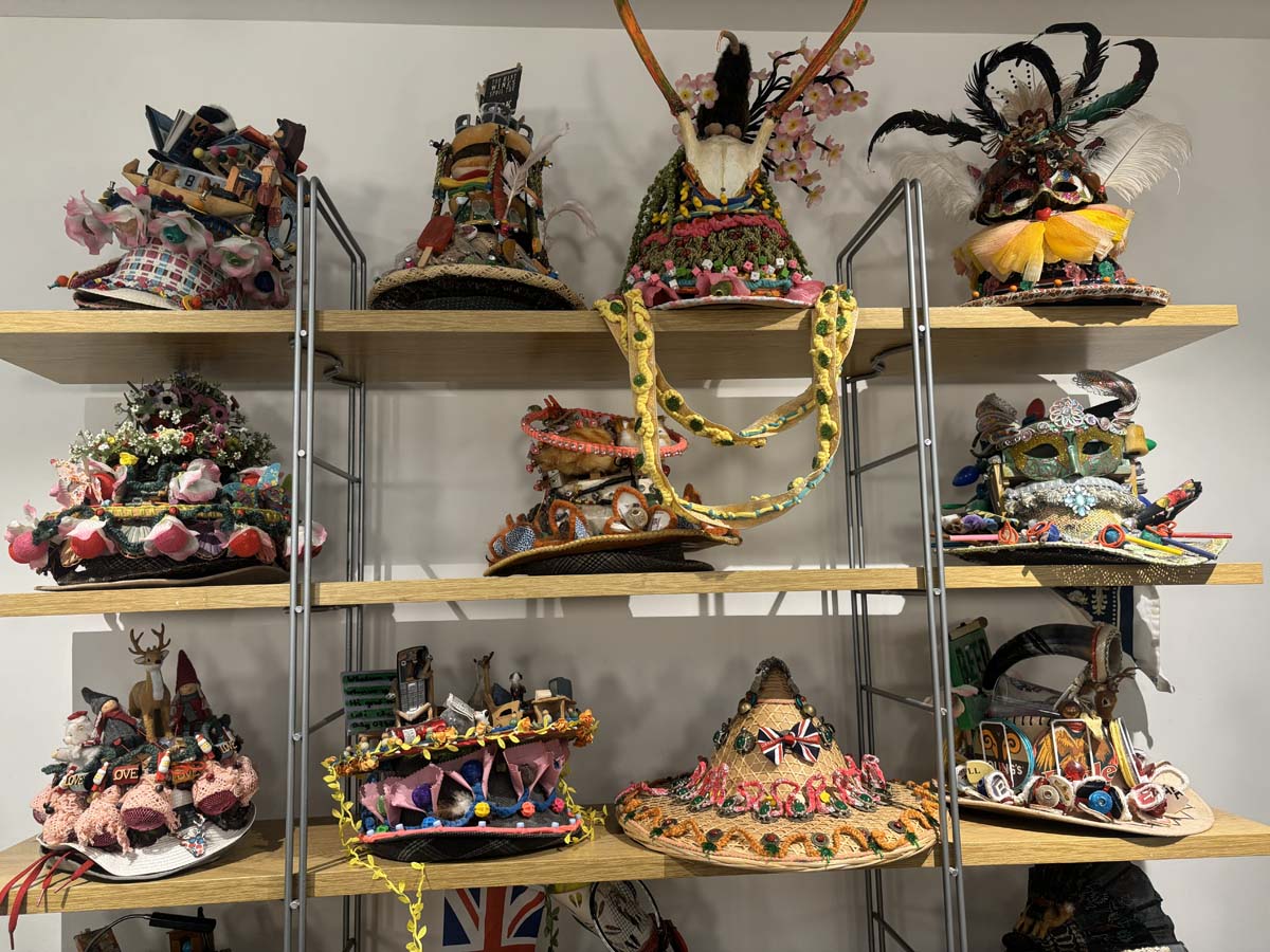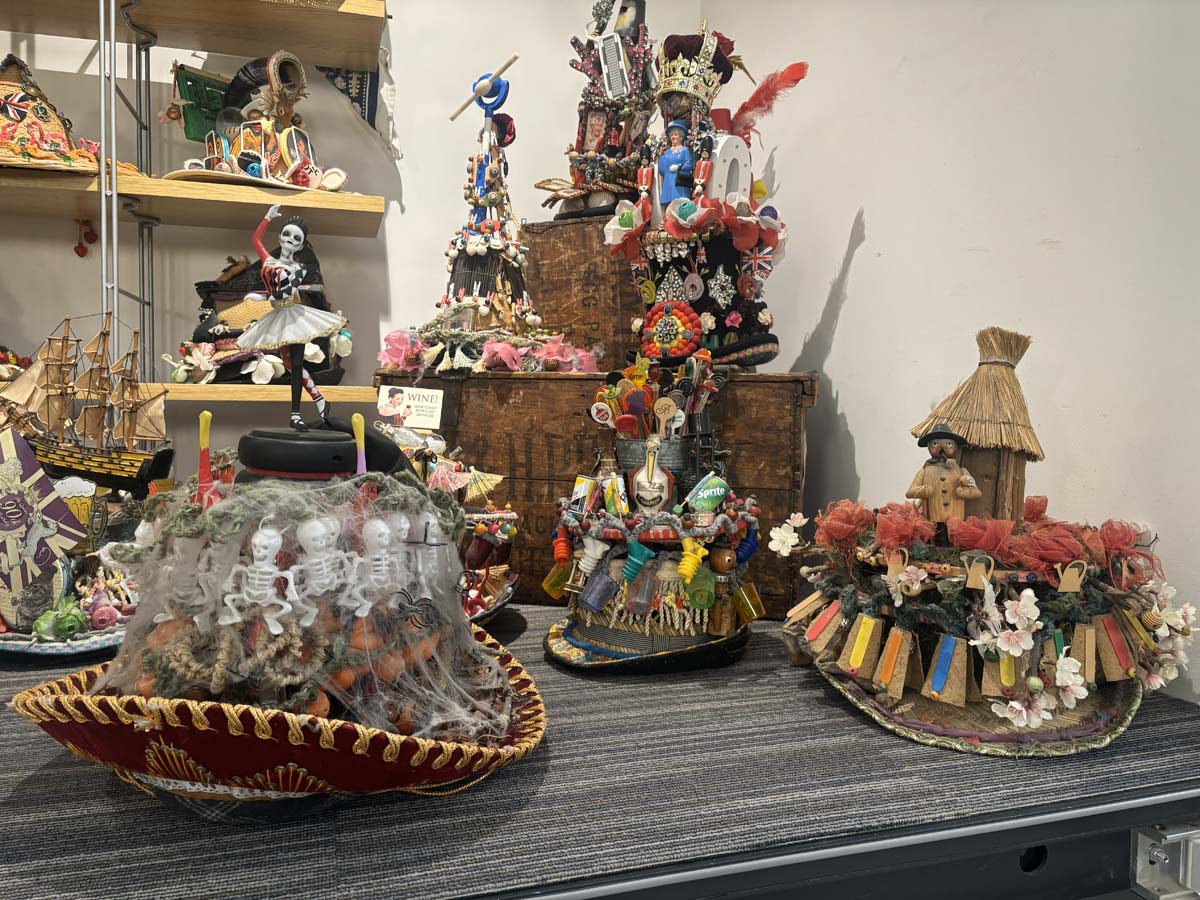 A consignment of 48 Carnival hats by Chito Salarza Grant - "The Hatman of London" to include crazy, quirky and out of this world designs for different events/festivals in London. To be sold as one lot including: