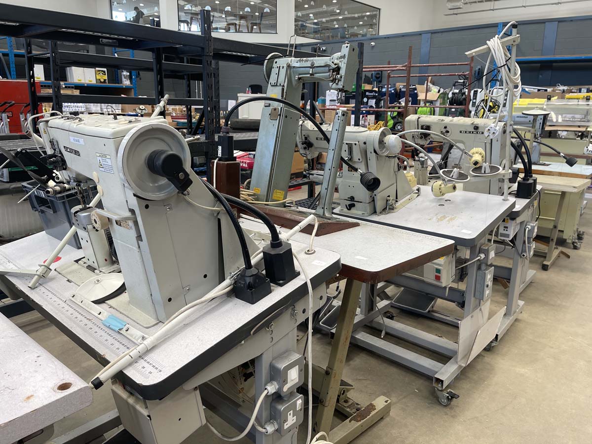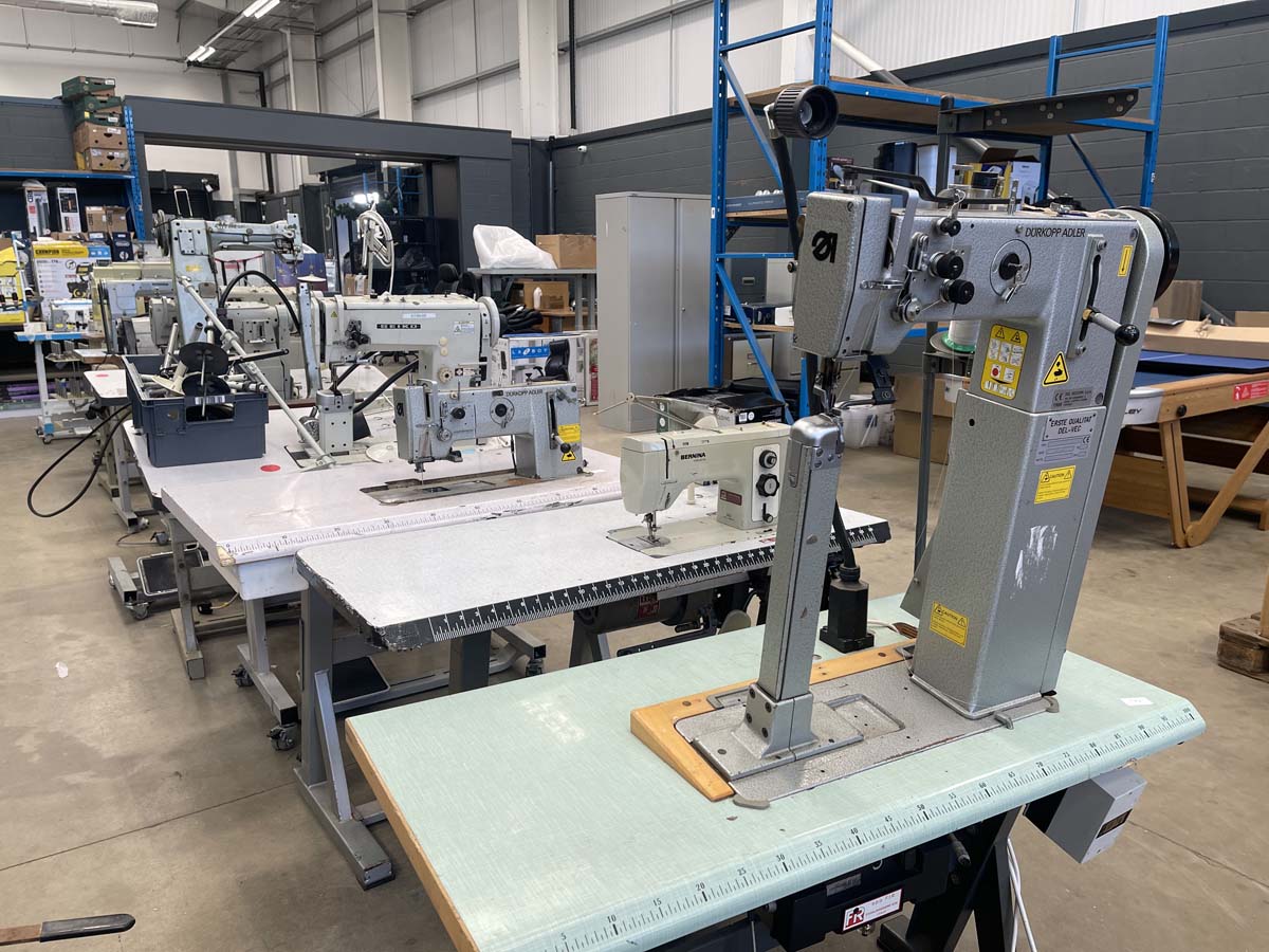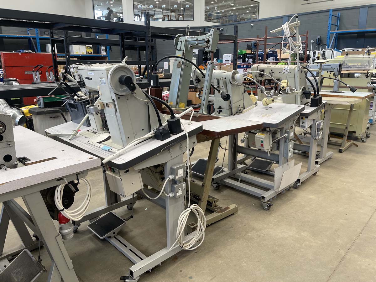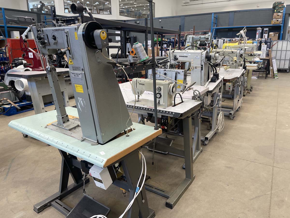 Jack 4 thread overlocker; Flat bed single needle sewing machines by Benina, Adler & others; Heavy duty industrial post sewing machines by Seiko (PWB- 8GWI), Adler, Durkopp Adler & Minerva; Bibo TSL 300v slitting cutter (2007); Bibo RL500 linear folding machines (2013), etc