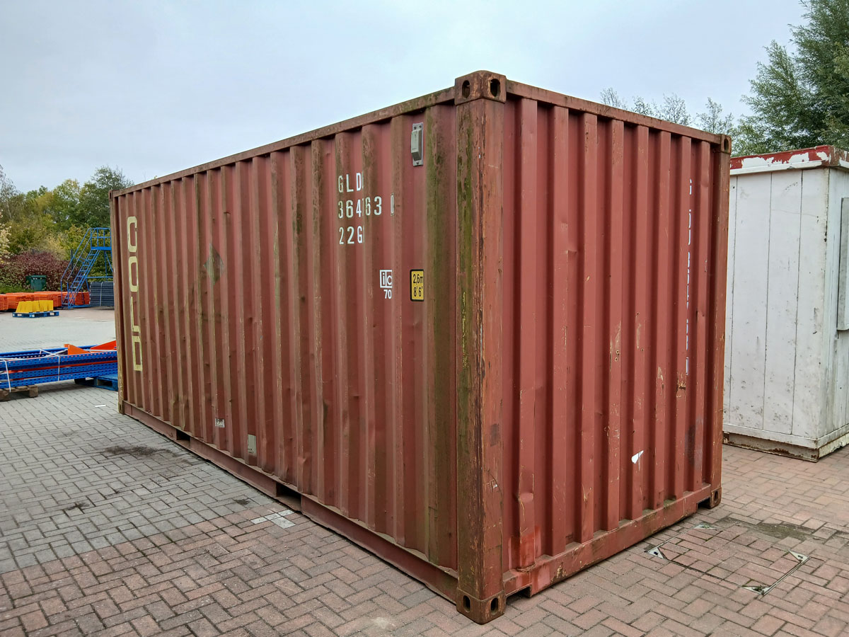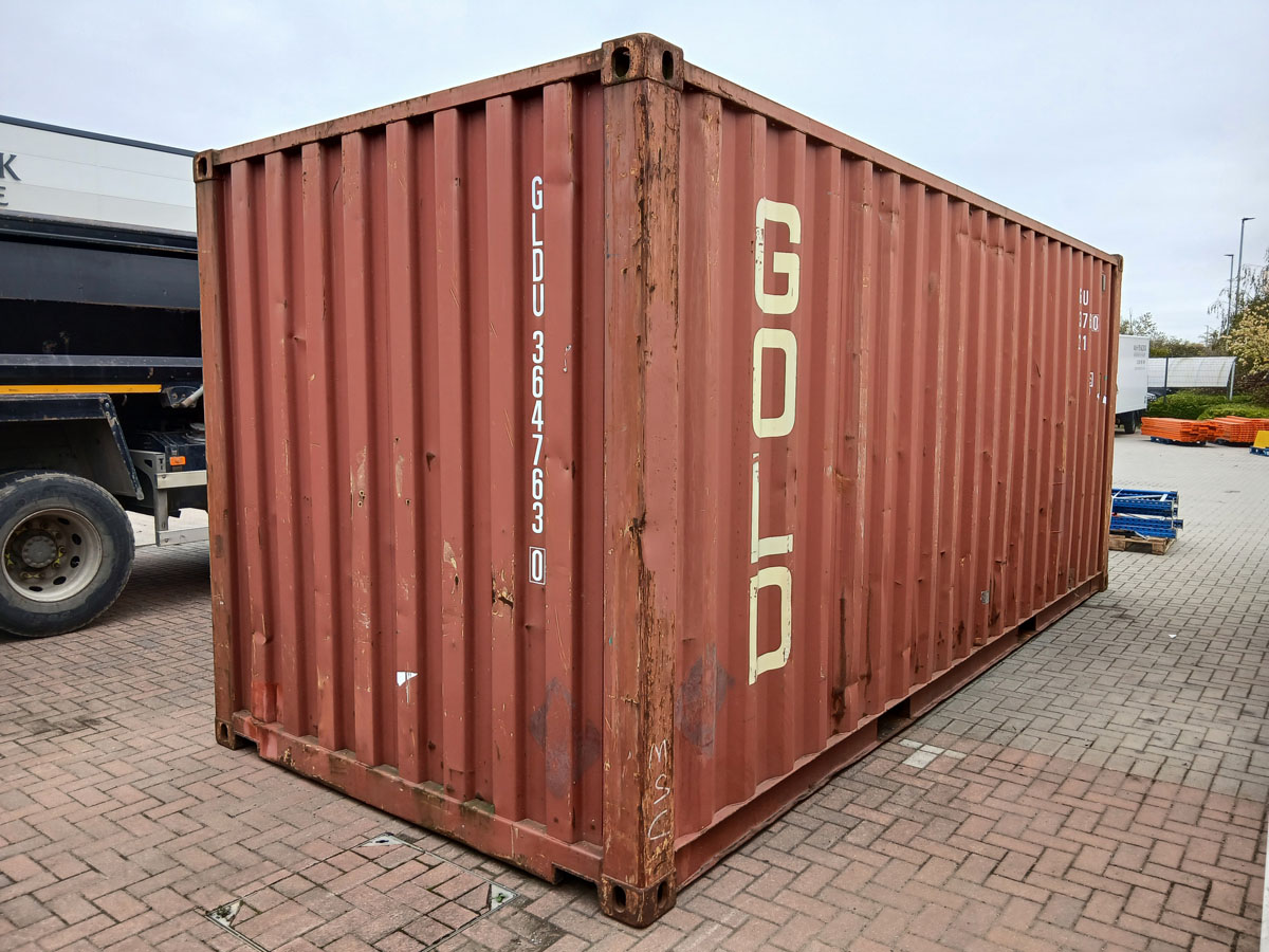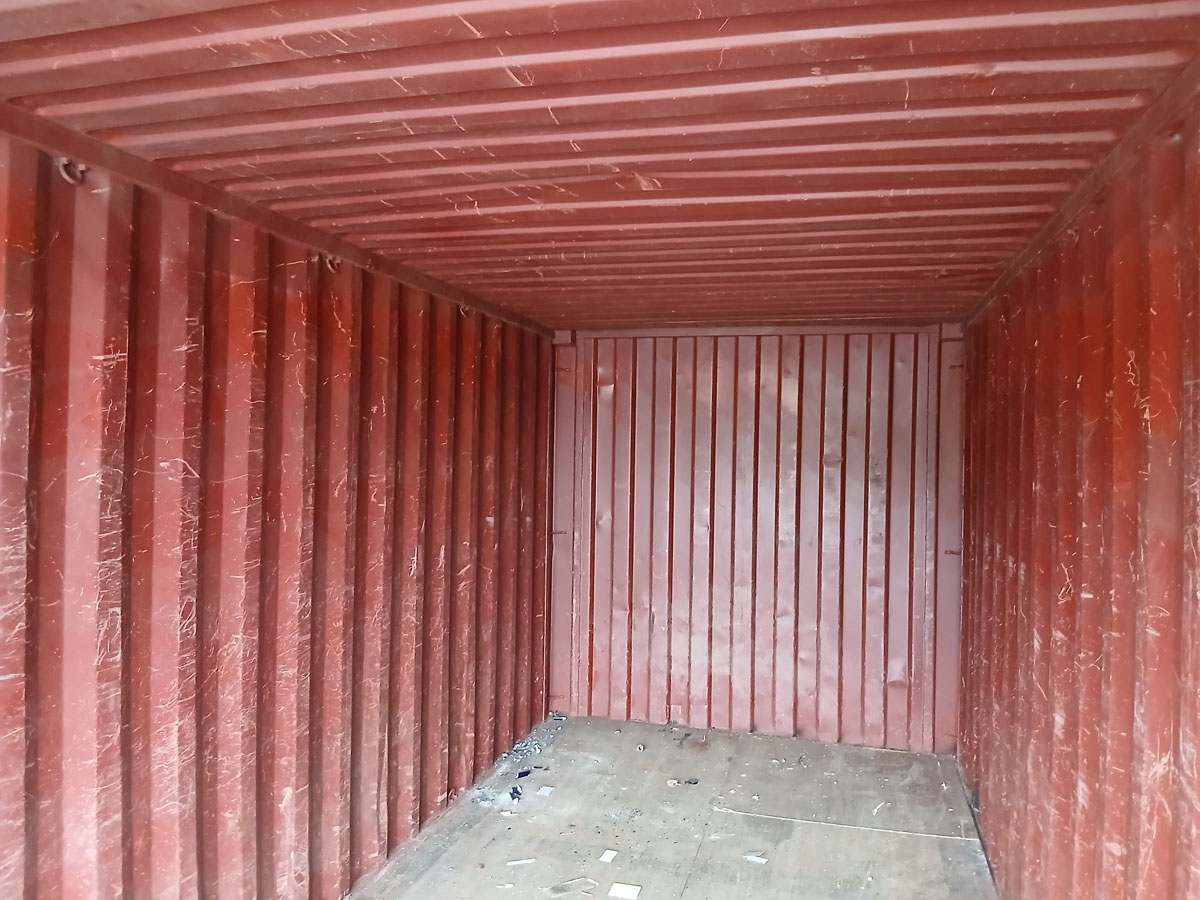 20ft x 8ft corrugated steel shipping storage container with a pair of end opening doors and interior plywood flooring
