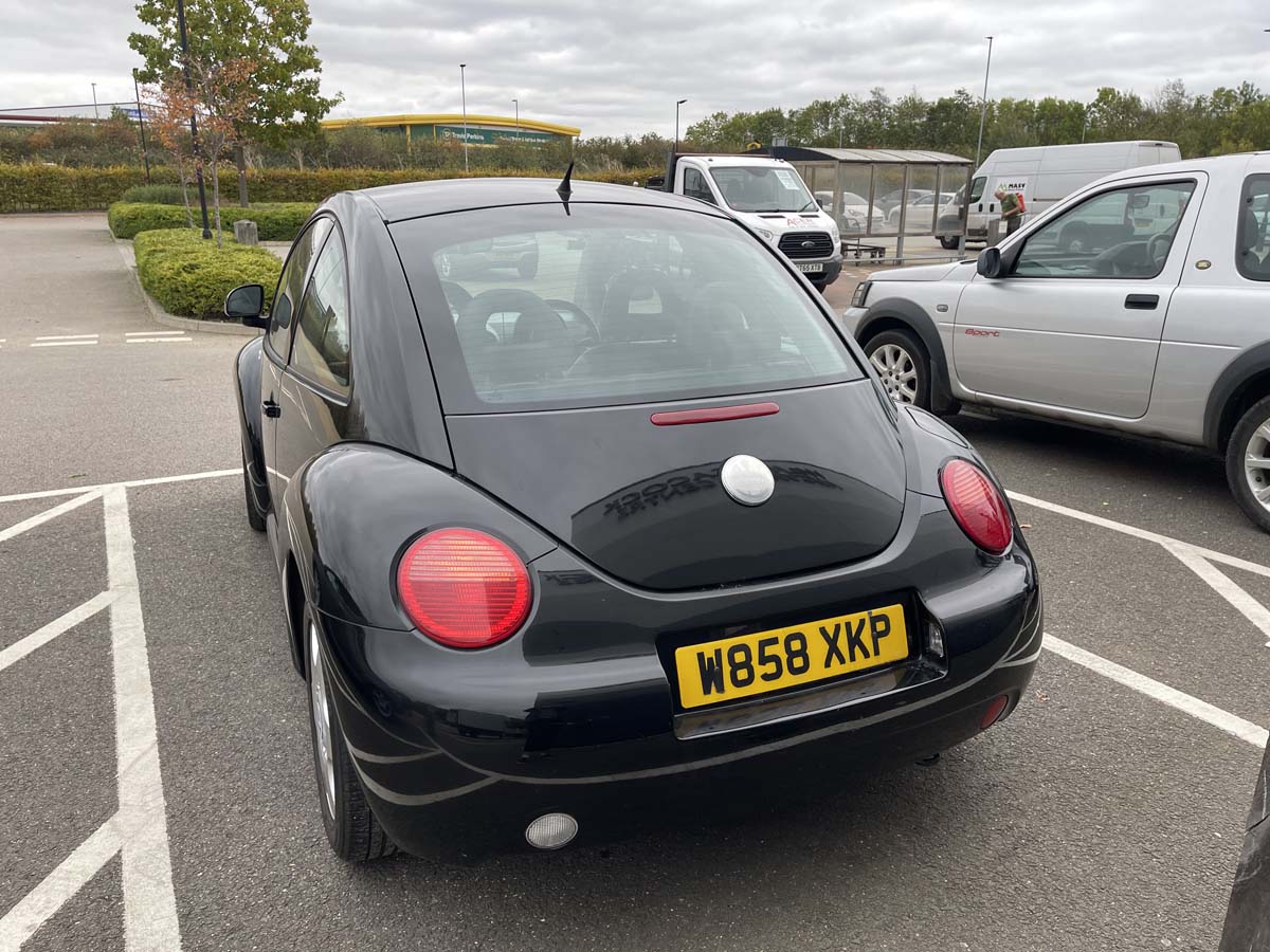 Volkswagen Beetle in black, registration plate W858 XKP, first registered 26.05.2000, 5 speed manual, three door hatchback, 1984cc, petrol, MOT until 15.09.2026, mileage showing 139,401, 1 former keeper, with V5 and one key. HPi checked.